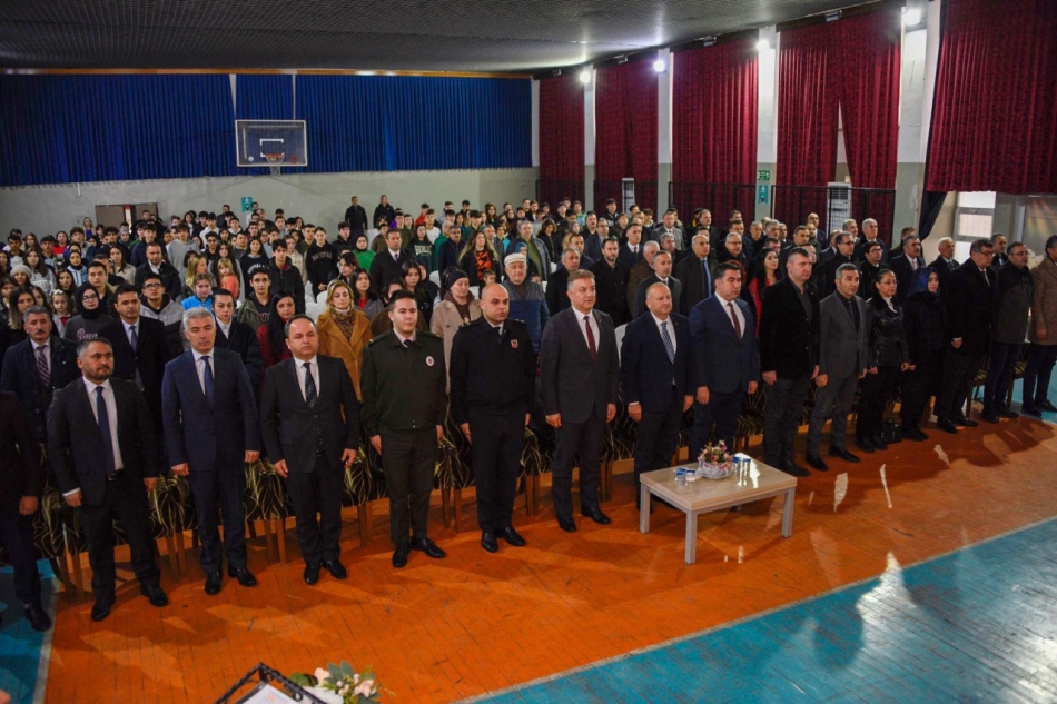 Adnan Menderes Mesleki ve Teknik Anadolu Lisesi Salonu’nda gerçekleştirilen programda öğrenciler hazırladıkları gösteride Milli Şairimiz Mehmet Akif Ersoy’un hayatından kesitler sunuldu. Öğrencilerin sunumu izleyenlerden tam not alırken, program sonunda İstiklal Marşı’nın 10 kıtası yine öğrenciler tarafından seslendirildi.