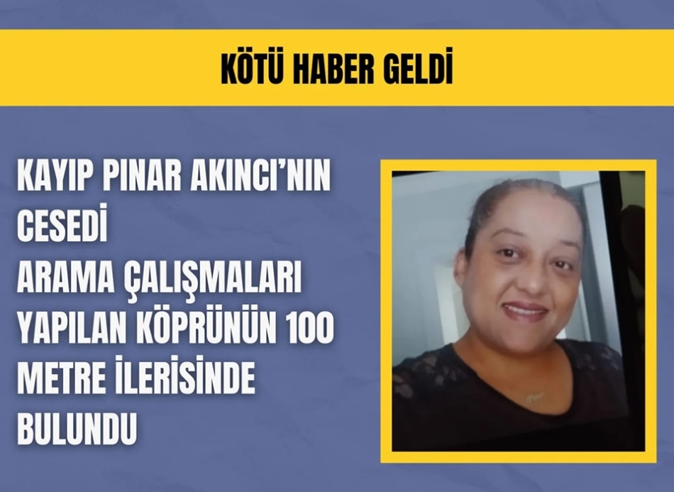 Olay şöyle gelişti; Pınar Akıncı’nın yakınlarının kayıp ihbarı üzerine harekete geçen ekipler, Akıncı’nın cep telefonunun sinyalini takip ederek Bolaman Irmağı kıyısında buldu.