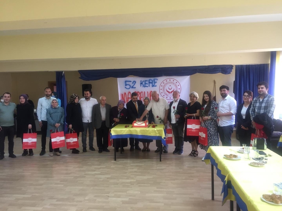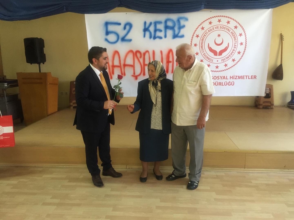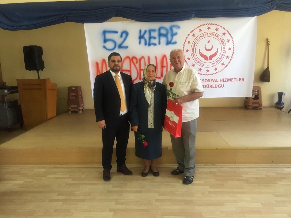 Yapılan ziyaretin anısına Aile ve Sosyal Hizmetler İl Müdürü Ender Yanık tarafından çiftlere çeşitli hediyeler verilerek, 52. yıl pastası kesildi ve hatıra fotoğraf çekimi yapıldı.