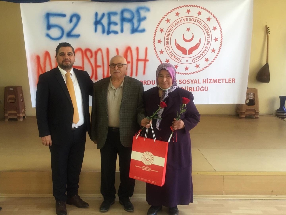 Aile Haftası etkinleri kapsamında, Ordu’da evliliklerinde 52. yılı, 52. ayı, 52. haftayı ve 52. günü tamamlayan çiftleri, Aile ve Sosyal Hizmetler İl Müdürü Ender Yanık ziyaret etti.