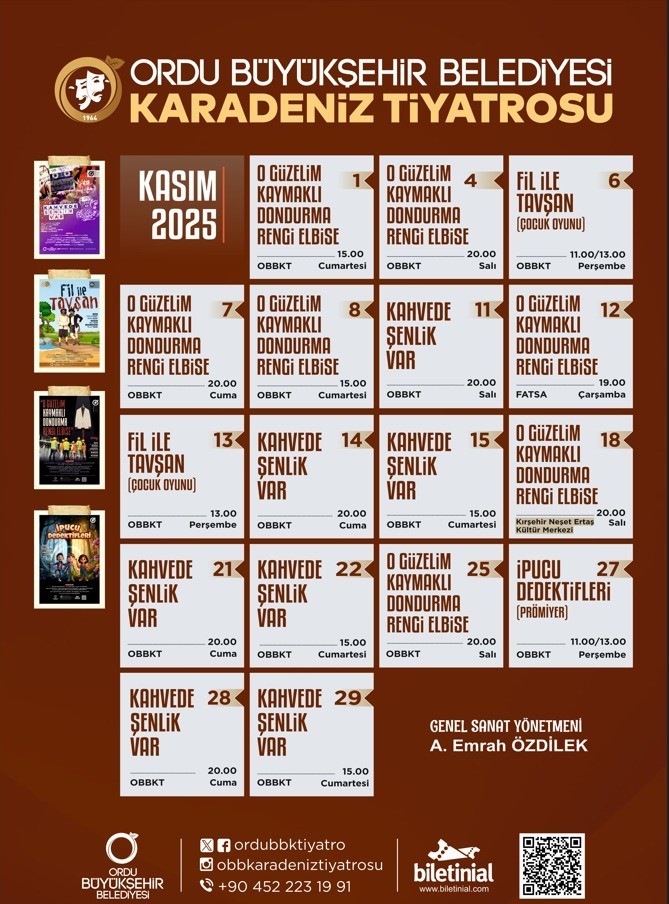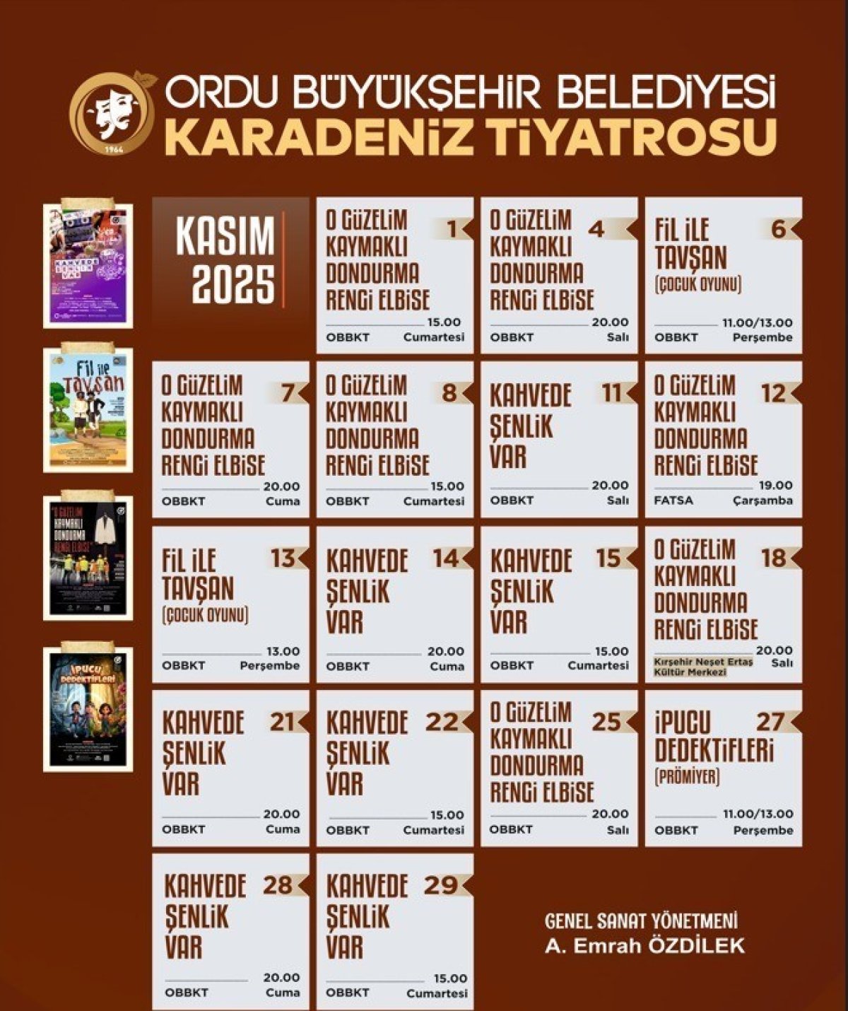 Kültür ve sanat etkinlikleri ile Ekim ayını dolu dolu geçiren Ordu Büyükşehir Belediyesi, Kasım ayında perdelerini 61 yıldır kapatmayan OBBKT ile Orduluları bir araya getirecek.