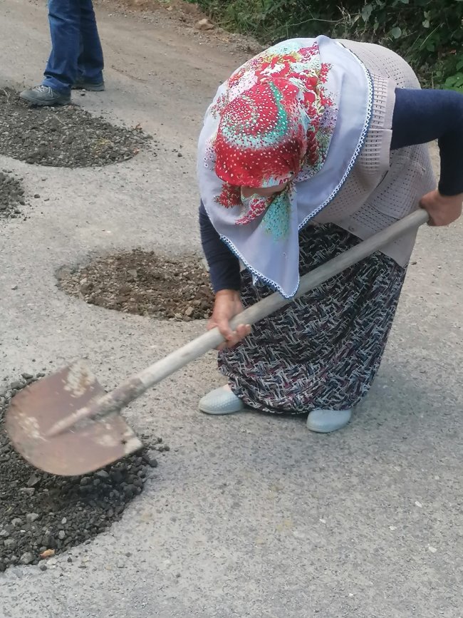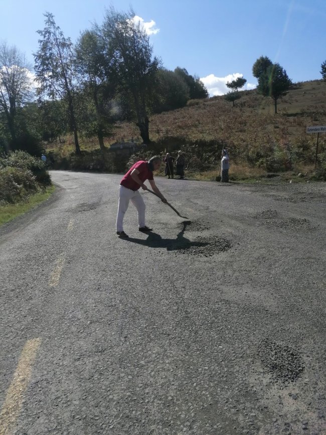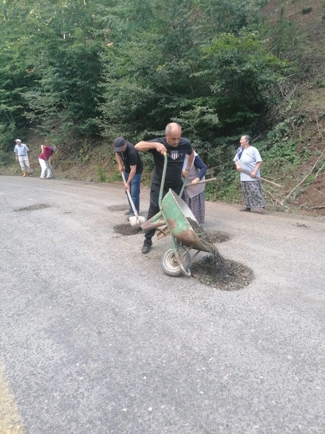 Ordu’nun Akkuş İlçesi 3. Grup yolunda, 7 köyün sakinleri bir araya gelerek yoldaki çukurları doldurma eylemi yaptı.