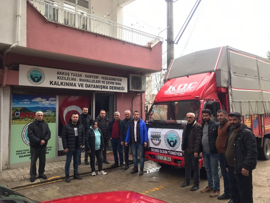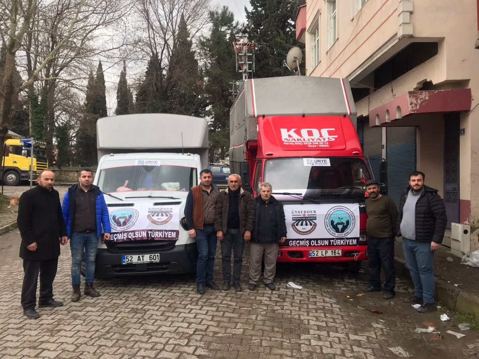 Ünye’de faaliyet gösteren Ünye Seyyar Sebze ve Meyveciler Dayanışma Derneği (ÜNSEBDER) ve Akkuş Tuzak ve Çevre Köyleri Yardımlaşma Derneği (AKTUDER) yetkilileri, afet bölgesindeki ihtiyaç sahiplerine insani yardım ulaştırmak için yola çıktı.
