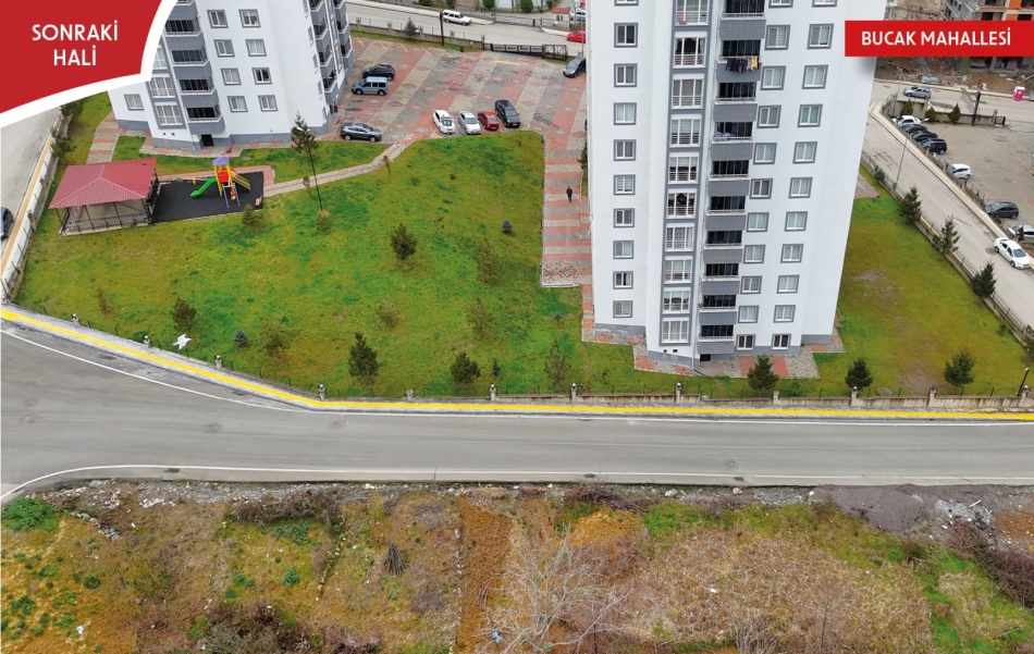 Bucak Mahallesi Muhtarı Abdullah Şahin ile Şahincili Mahalle Muhtarı Sezgin Güzelordu, kaldırım çalışması için Başkan Tepe’ye teşekkür etti.