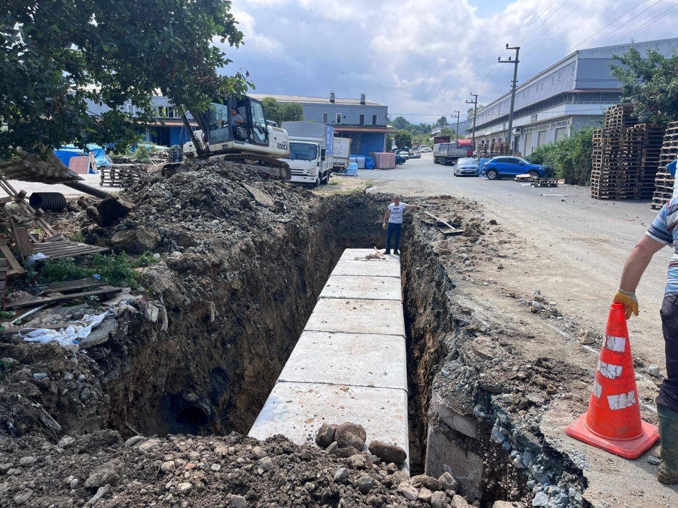 Aşırı yağışlarda esnafların mağduriyet yaşadığı bölgede çalışmalarını tamamlayan ekipler, bölgede 550 metre uzunluğunda yağmur suyu hattı inşa etti.