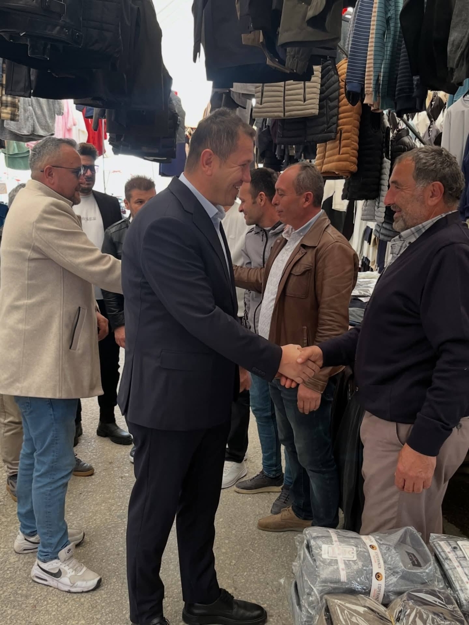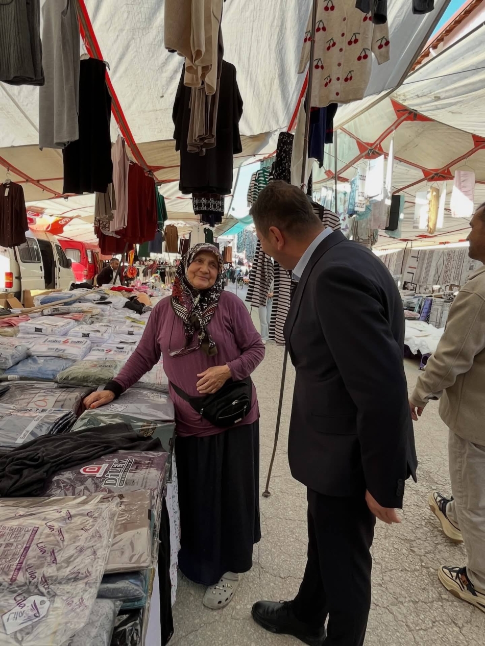 Ekibiyle birlikte dış pazar esnafını ziyaret eden Başkan Adayı Hüseyin Kartal; "Bizim gücümüz; esnafımızın samimiyetinden, içtenliğinden geliyor. Dış pazar esnafımızı ziyaret ettik; hâl hatır sorduk, dertlerini ve taleplerini dinledik." dedi.