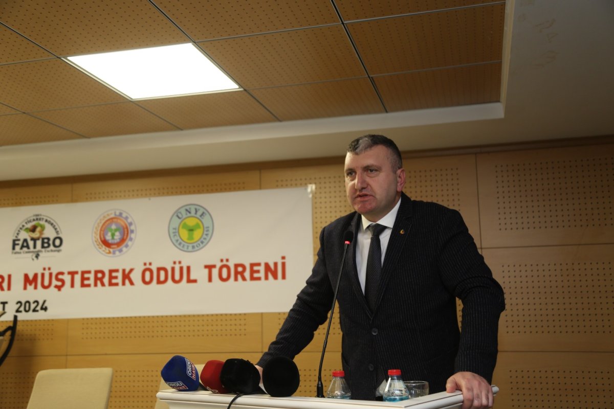 Ordu Valisi Muammer Erol, Ordu Büyükşehir Belediye Başkanı Dr. Mehmet Hilmi Güler, Altınordu Belediye Başkanı Aşkın Tören ve Ordu Ticaret ve Sanayi Odası Başkanı Levent Karlıbel başta olmak üzere Ordu ilçelerinin sanayi ve ticaret odaları başkanları ile ticaret borsaları başkanlarının hazır bulunduğu ödül töreninde konuşan Ünye Ticaret ve Sanayi Odası Başkanı İrfan Akar, “Bölge ekonomisine ciddi katkıları olan firmalarımızı ayrı ayrı tebrik ediyorum. Onların başarısı ve gelişimi aynı zamanda ülkemizin başarısı ve gelişimidir. Ordu İli oda ve borsaları olarak ihracat yapan üyelerimizin yanında olduk. Bundan sonra da yanlarında olmaya devam edeceğiz.” dedi.