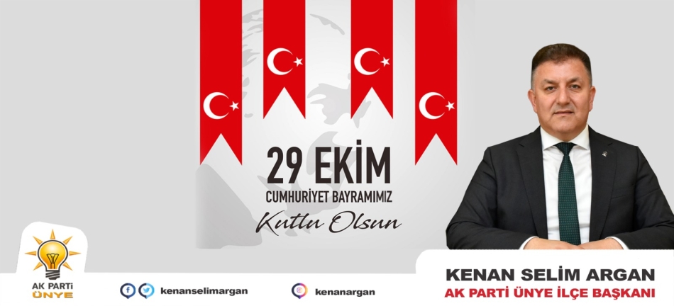 AK Parti Ünye İlçe Başkanı Kenan Selim Argan, yazılı bir mesaj yayımlayarak, Cumhuriyet Bayramı'nın 99. yıl dönümünü kutladı.