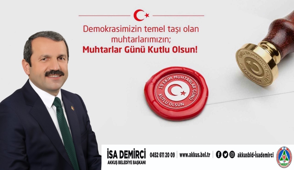 Akkuş Belediye Başkanı İsa Demirci, 19 Ekim Muhtarlar Günü dolayısıyla bir kutlama mesajı yayımladı.