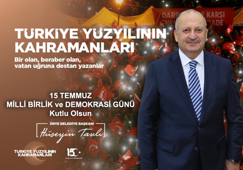 Ünye Belediye Başkanı Hüseyin Tavlı, 15 Temmuz Demokrasi ve Milli Birlik Günü vesilesi yayınladığı mesajında 15 Temmuz’da yaşanan hani darbe girişimine karşı verilen mücadelenin Türk Milletinin ruhunu yansıttığını söyledi.