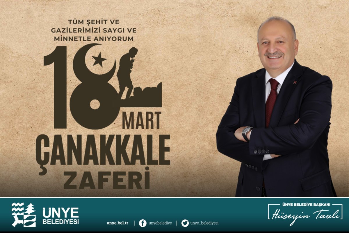 Ünye Belediye Başkanı Hüseyin Tavlı, 18 Mart Çanakkale Zaferi ve Şehitleri Anma Günü dolayısıyla bir mesaj yayınladı.