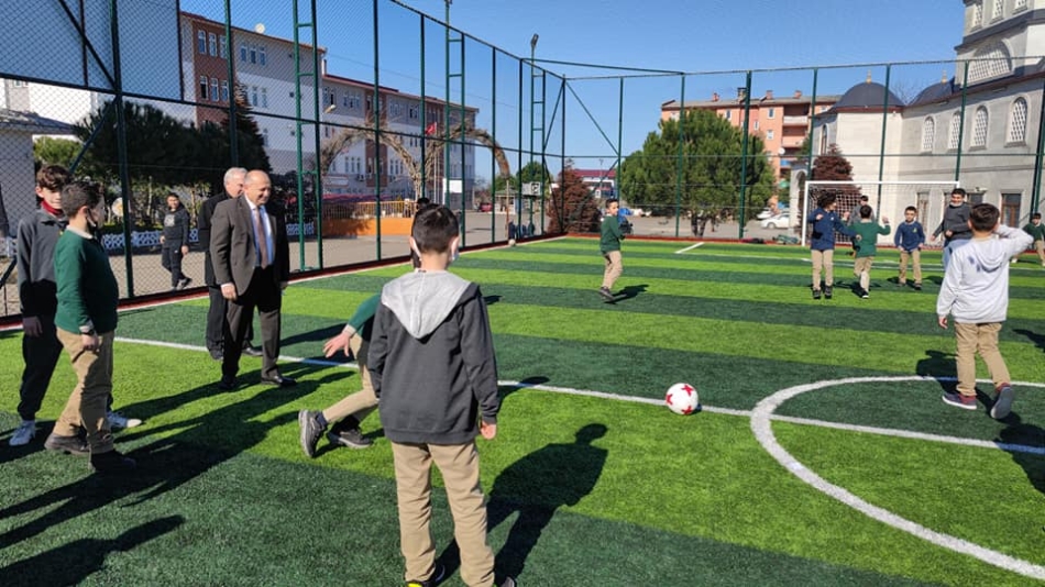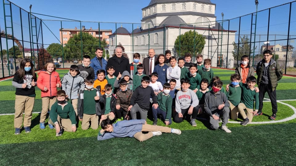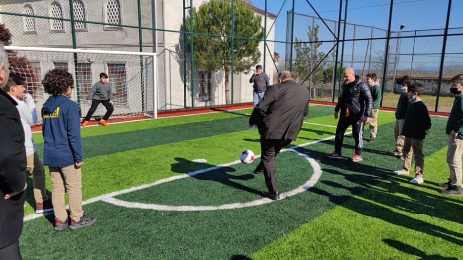 Ünye Belediye Başkanı Hüseyin Tavlı, Gençlik ve Spor Bakanlığı ve Ünye Belediyesi işbirliğiyle ilçemize kazandırılan ve tamamlanan Yusuf Bahri Proje İmam Hatip Lisesi bahçesine bulunan halı sahada öğrencilerle bir araya geldi.