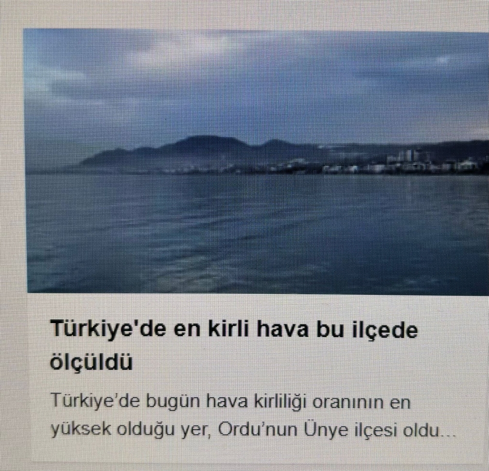 Yayınlanan haberlerde Çevre, Şehircilik ve İklim Değişikliği Bakanlığı Sürekli İzleme Merkezi (SİM) verilerine göre, Ünye uzun süredir hava kalitesinin en düşük olduğu ilçeler arasında yer aldığı ve Bakanlığın sisteminde yer alan Hava Kalitesi İndeksi (HKİ) verilerine göre, ilçede bugün ölçülen değer "267" olarak kaydedildiği belirtildi.