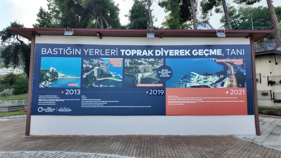 Orduluların bu hikayeyi unutmaması, merak edip buraya gelen vatandaşları bilgilendirmek adına alanın girişine asılan büyük görsel de geçmiş ile bugünü gözler önüne seriyor. “Bastığın Yerleri Toprak Diyerek Geçme, Tanı” sloganıyla birlikte 2013 yılından bugüne süre gelen süreci anlatan görsel vatandaşların oldukça dikkatini çekiyor.