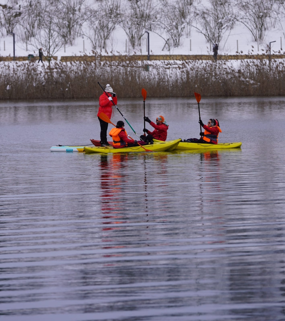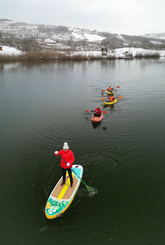Fatsa Gaga Gölü’nün masalsı görüntüsü Ordu’daki kano tutkunlarını da mest etti. Kanolarla karla kaplı Gaga Gölü’nde antrenman yapan Ordu Kano Kulübü sporcuları, renkli görüntüler oluşturdu. Ordu Büyükşehir Belediye Başkanı Dr. Mehmet Hilmi Güler’de kanocuların bu keyifli anlarını sosyal medya hesaplarından paylaştı.