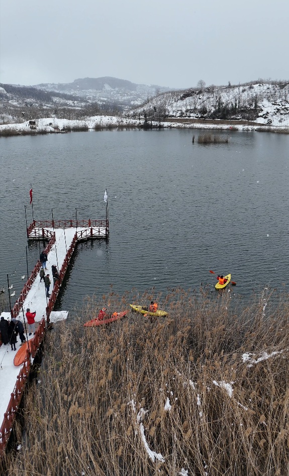 Ordu’nun Fatsa ilçesinde bulunan ve beyaz örtü ile kaplanan Fatsa Gaga Gölü kanolarla renklendi. Büyükşehir Belediyesinin çalışmaları ile tabiat parkına dönüşen alan, yaz ayların da olduğu gibi kışın da kendine hayran bıraktı.