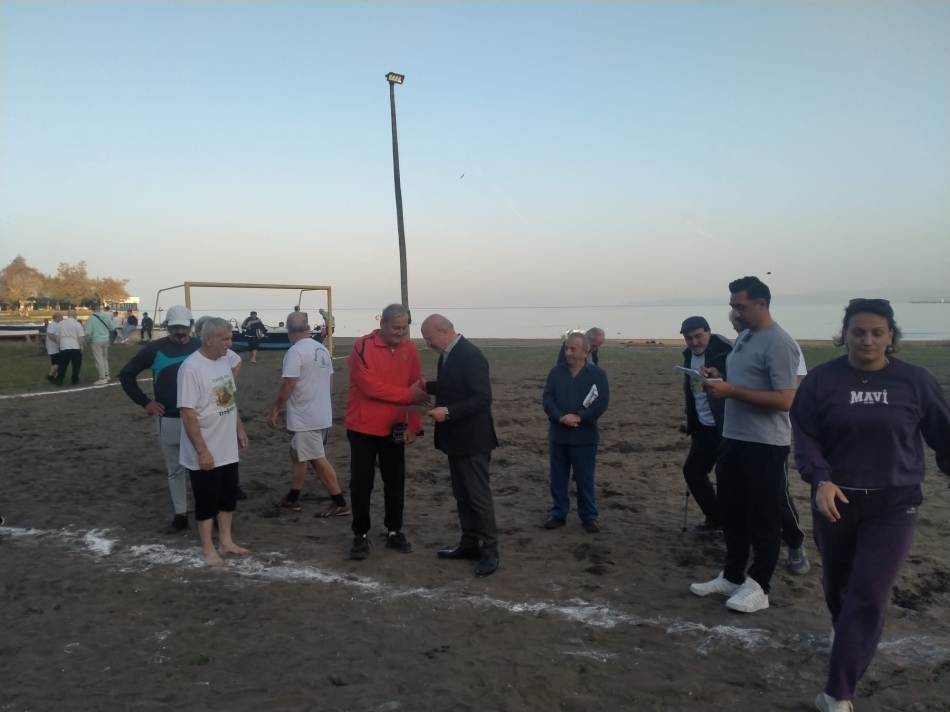 Aramızdan ayrılan futbolcuların anısına bir dakikalık saygı duruşu ve okunan İstiklal Marşı'nın ardından eski futbolcular kum sahada ter döktü.