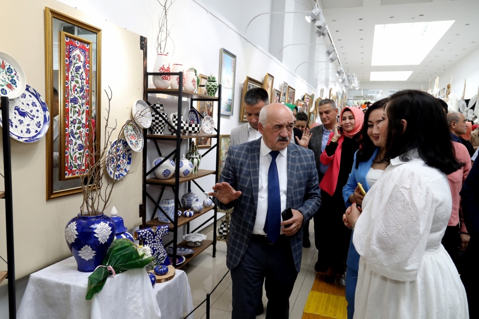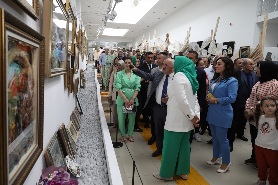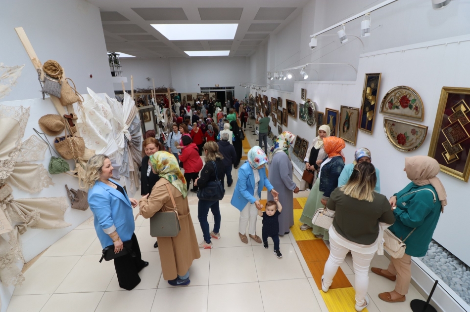 Konuşmaların ardından usta öğreticilere çiçek takdim edildi. Kesilen açılış kurdelesi sonrası sergi gezildi.