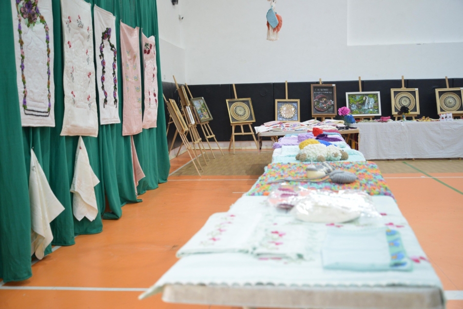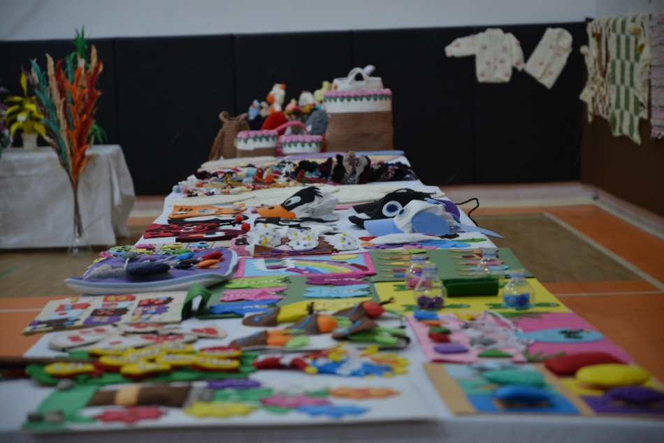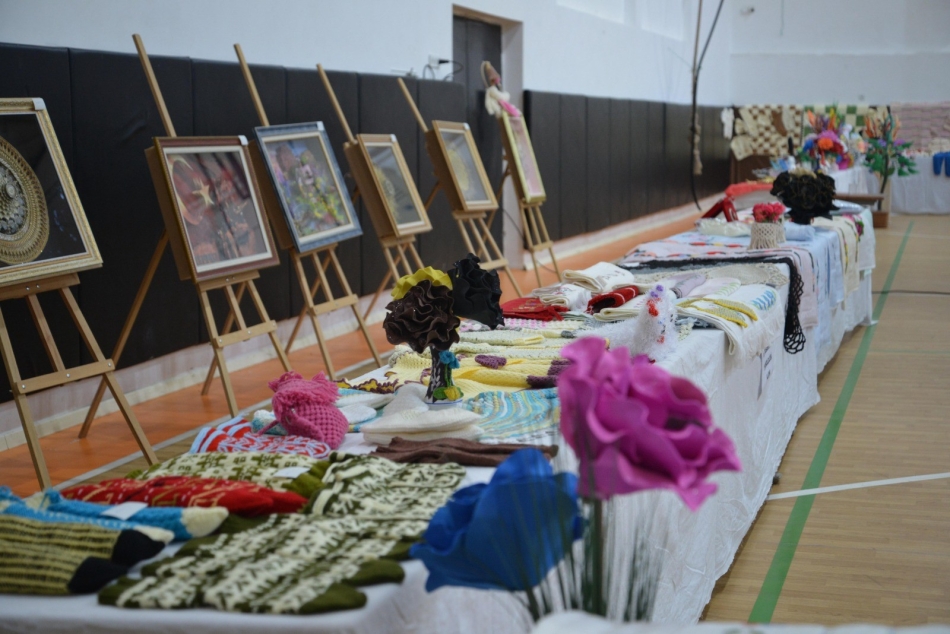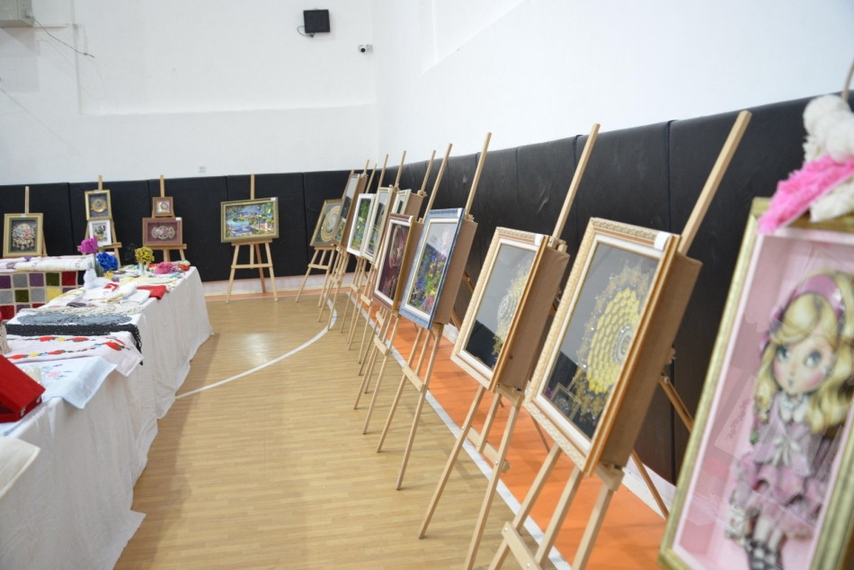Sergide kağıt rölyef tablo, kanaviçe, panç, epoksi, örme battaniye, örgü çorap, krep, amugrami oyuncak, penye ipinden sepet, supla, eva çiçek, makrome, kıyafet, kadife ipten terlik ve babet ile iğne oyası gibi el işi branşlarında alınan eğitimler sonucunda yapılan eserler sergilendi.