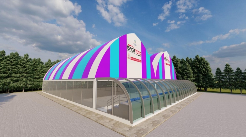 2 ADET TENİS KORTUNUN ÜZERİ KAPATILIP, TRİBÜN YAPILIYOR