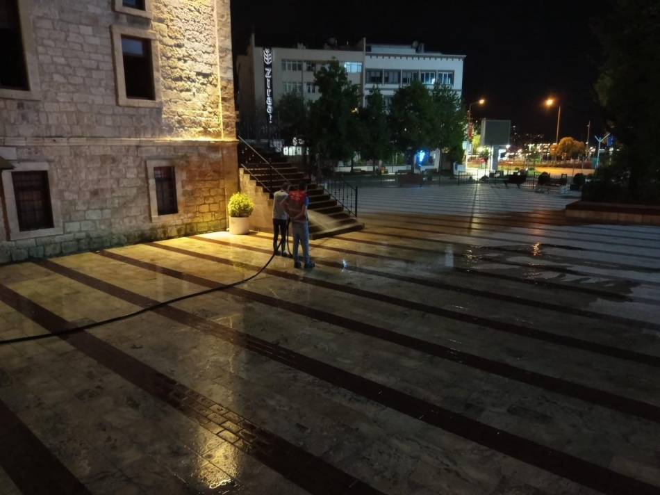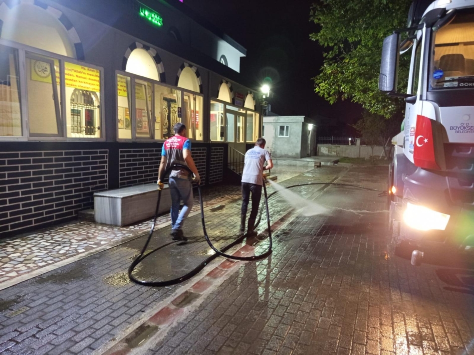Büyükşehir Belediyesi, vatandaşların ibadetlerini hijyenik bir ortamda yerine getirebilmeleri amacıyla il genelindeki camilerde temizlik çalışmalarını sürdürüyor. Sabahın erken saatlerine çalışmalarına başlayan ekipler, belirli program dahilinde özverili bir çalışma yürütüyor. Halılar, camlar, ayakkabılıklar, minber, mihrap, müezzin mahfili gibi cami içi alanlarda silip süpürme işlemleri yapan ekipler, dış mekanda ise abdesthaneler ve WC’leri yıkayarak pırıl pırıl yapıyor. Gece saatlerinde ise cami bahçelerinde yıkama işlemi gerçekleştiriyor.