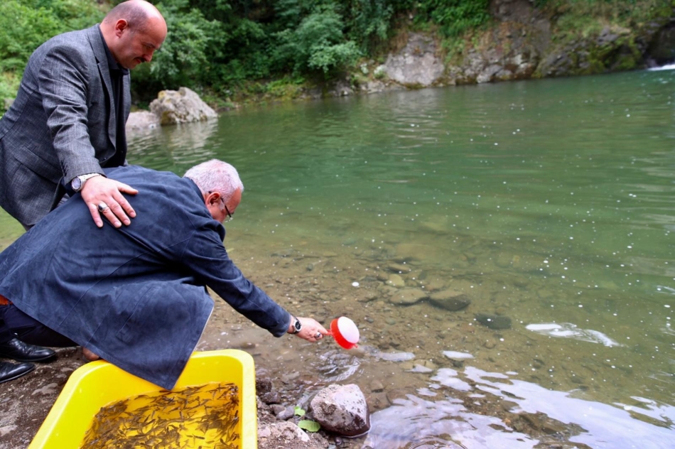 Ordu Büyükşehir Belediye Başkanı Dr. Mehmet Hilmi Güler, Curi Deresi Gökçegelin Şelalesi’nin bulunduğu su kaynağına ilçe muhtarlarıyla birlikte binlerce kırmızı benekli alabalık yavrusunu dereye bıraktı.