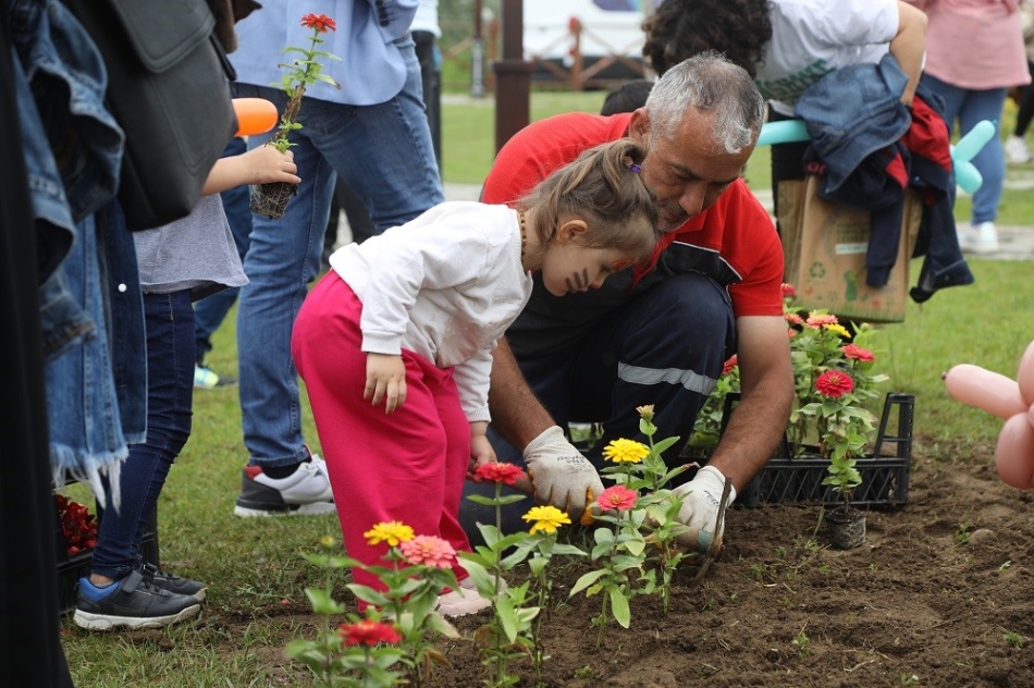 Geri dönüşüm, sıfır atık, iklim değişikliği gibi konuları; çiçek dikimi, yarışmalar ve skeçler eşliğinde eğlenerek öğrenen çocuklar parmak boyama, yüz boyama, sahne etkinlikleri ile de keyifli vakit geçirdi.