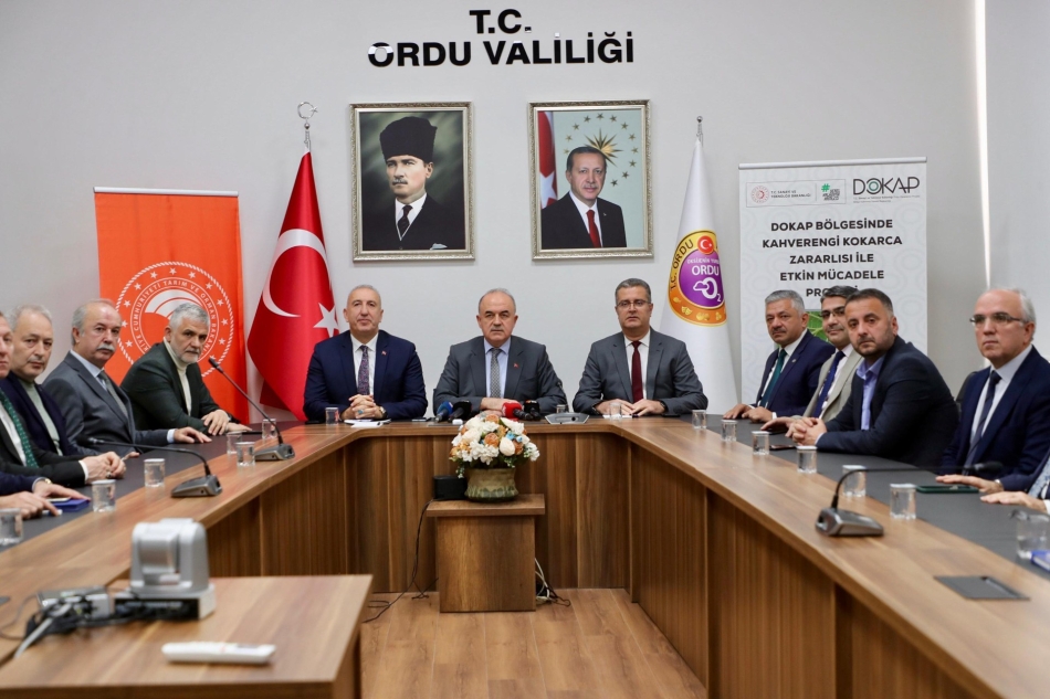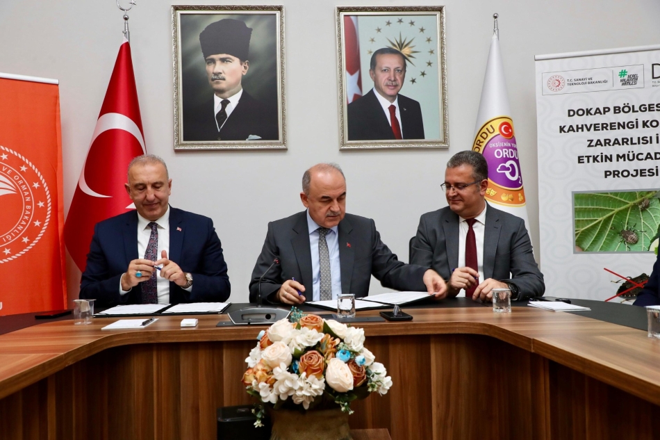 Yılmaz, ”Doğu Karadeniz Projesi Bölge Kalkınma İdaresi Başkanlığımıza bir proje teklifimiz olmuştu. Bugün burada protokolünü imzalayacağımız bu projeyle de Şubat-Mart ayları döneminde yapacağımız ikinci tur ilaçlamanın burada kullanılacak ilaçlamanın tamamını karşılayacağız. Proje, %50 DOKAP ve %50 Bakanlığımız kaynakları ile uygulanacak. Sayın Valimizin himayesinde Ordu genelinde kararlılıkla sürdürdüğümüz bu çalışmanın sonucunda kahverengi kokarca popülasyonu minimize edeceğiz ve bu zararlının fındığımıza ve diğer tarım ürünlerine yapmış olduğu zararı en alt seviyeye düşüreceğiz” dedi.