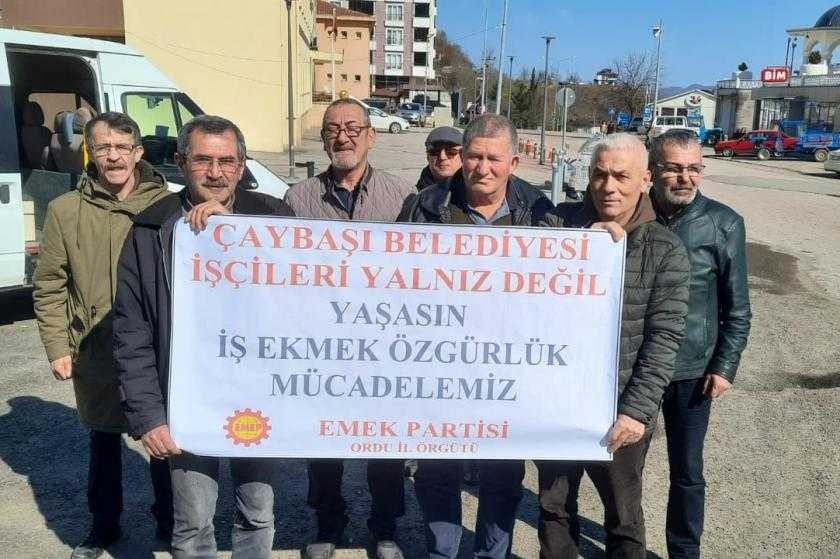 Emek Partisi olarak Ordu Çaybaşı Belediyesi’nde 2 Şubat 2023 tarihinde başlatılan greve destek amacıyla ikinci gelişlerinin olduğunu söyleyen İl Başkanı Hikmet Poyraz, "Deprem nedeniyle acımız ve öfkemiz büyük.  Depreme hazırlık yapılmamasından dolayı ölüm ve zararlar fazla oldu. Hala gereken destek yok. Halkın kendi örgütlenmesi ve dayanışma yaraları sarıyor. Önlem almayan sorumlulardan da hesapta sorulacak. Emek Partisi de dahil, partiler, sendikalar, odalar, derneklerin desteği devam ediyor, edecek. Burada da iş ve ekmek kavgası sürüyor. Yaşam devam ediyor. Hem deprem yaralarının sarılması hem de hak mücadelesinin kazanılması için dayanışma şart." dedi.