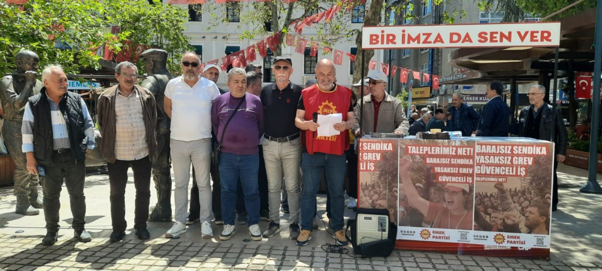 Emek Partisi Genel Merkezinin başlattığı “Barajsız Sendika, Yasaksız Grev, Güvenceli İş” kampanyası kapsamında Ordu’da sendika, parti ziyaretlerinden sonra sokakta imza standı açtıklarını belirten Emek Partisi Ordu İl Başkanı Yasin Uzun, “Haziran ayında toplanılan imzalarla birlikte işçilerin örgütlenme hakkını kolaylaştıran yasa tasarısını Meclis’e vereceğiz.” dedi.