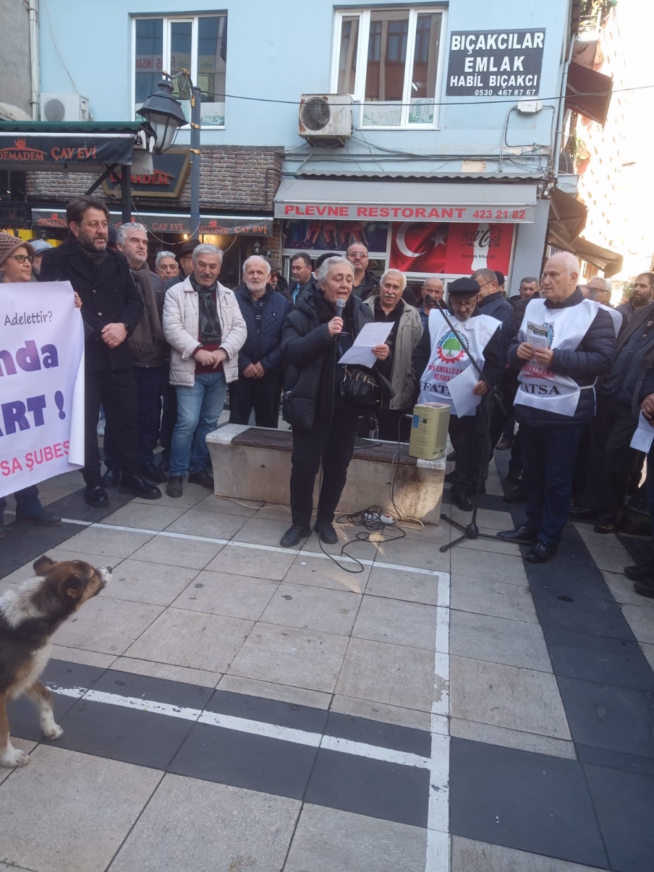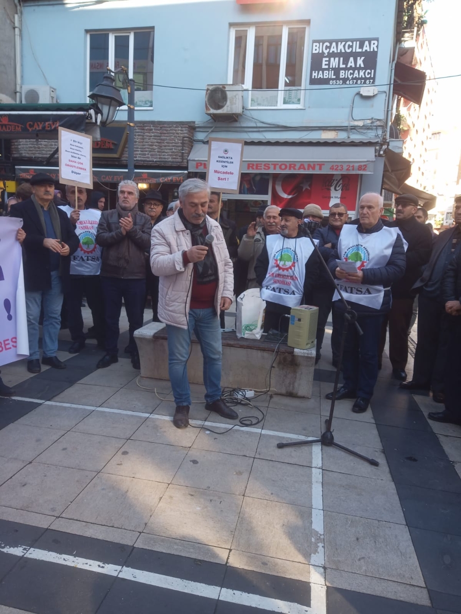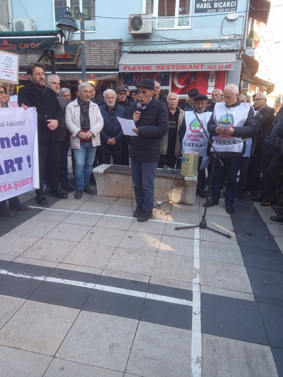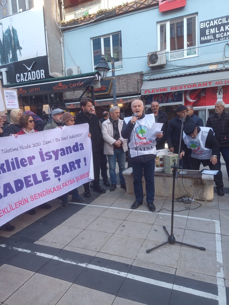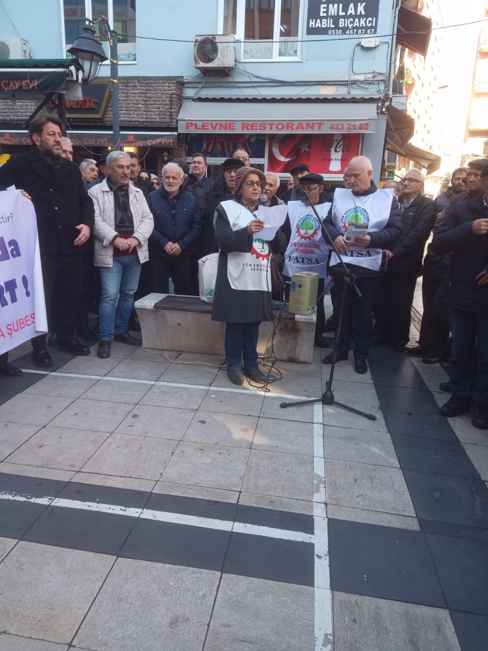 Fatsa Cumhuriyet Meydanı’ndan Plevne Meydanı’na yürüyen emekliler burada basın ‘’açık mikrofon’’da kısa konuşmalar yaptı.