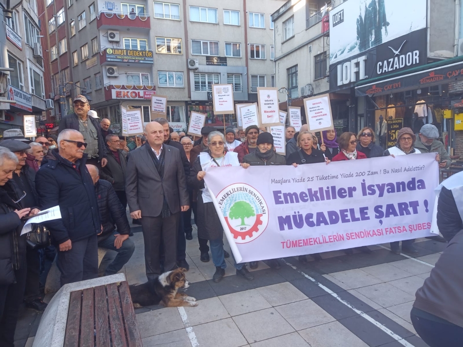 Tüm Emeklilerin Sendikası Fatsa Şubesi üyeleri; Fatsa Cumhuriyet Meydanı’nda toplanarak yürüyüşe geçti. Yürüyüş sırasında ‘’Emekliye Bütçe, Toplu Sözleşme, İkramiye Dört Maaş’’ gibi sloganlar atan emekliler, balkonlardan ve esnaflardan alkış desteği aldı.