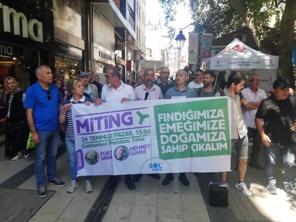 24 Temmuz Pazar günü saat 15.00’da Fatsa Cumhuriyet Meydanı’nda düzenlenecek olan miting için sosyal medya üzerinden videolar paylaşan Sol Parti, fındık üreticilerinin sorunlarını birebir duyurmaları için çalışmalar yürütüyor. Söz konusu videolarda konuşan yurttaşlar “Fatsa’nın asıl altını fındıktır” mesajı verdi.