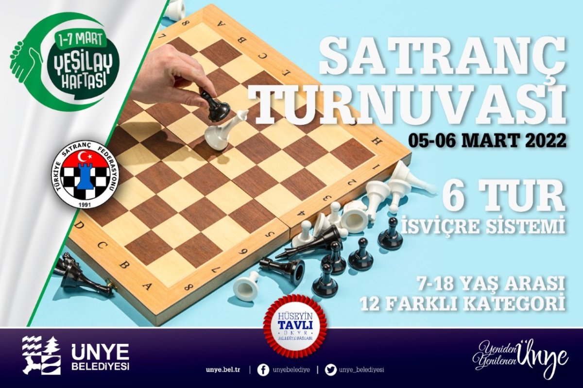 01-07 Mart Yeşilay Haftası kapsamında bir dizi etkinlikler organize eden Ünye Belediyesi hafta sonu gençlere yönelik satranç turnuvası düzenliyor. 05-06 Mart tarihleri arasında düzenlenecek turnuvaya 7-18 yaş arasında 12 farklı kategoride katılım olacak.