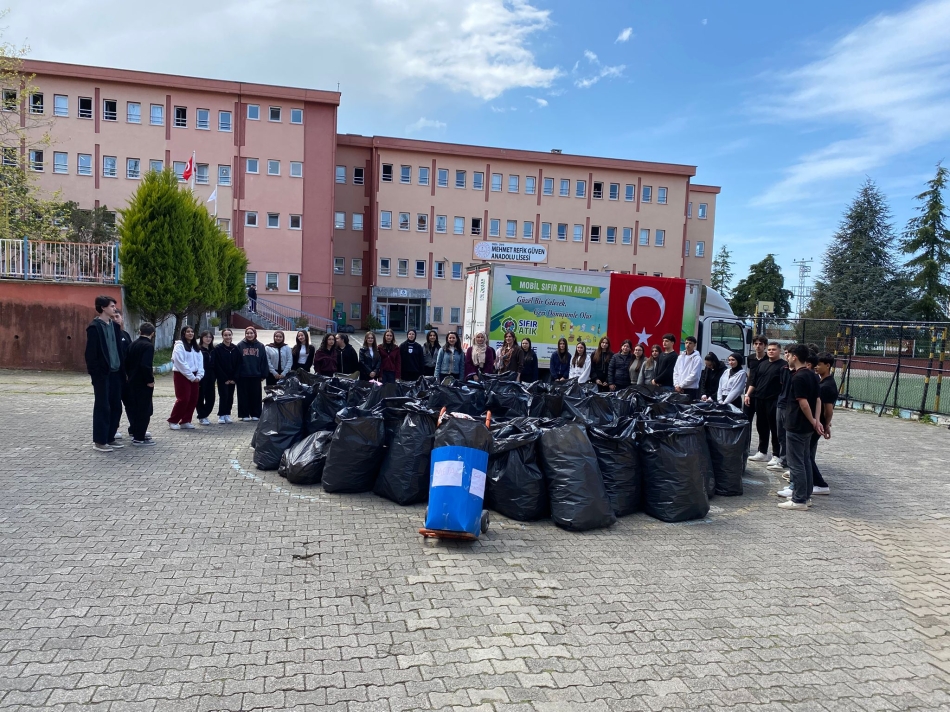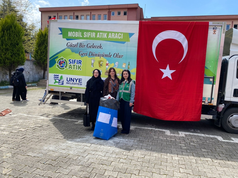 Ünye’de çevreye duyarlı nesiller yetiştirme hedefiyle yürütülen Sıfır Atık çalışmaları, Ünye Belediyesi’nin koordinasyon ve destekleriyle eğitim kurumlarında etkisini artırarak devam ediyor. Bu kapsamda Mehmet Refik Güven Anadolu Lisesi öğretmen ve öğrencileri tarafından yaklaşık iki yıldır kararlılıkla sürdürülen geri dönüşüm çalışmaları, belediyenin sağladığı katkılarla daha da güçleniyor.