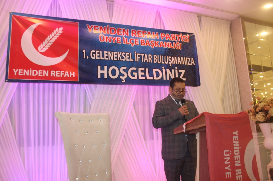 Yeniden Refah Partisi Ünye İlçe Teşkilatını iftar programı Genel Başkan Yardımcısı Erkan İlyas Helvacı, Genel Merkez Teşkilat Başkan Yardımcısı Mustafa Barutçu, İl Başkanı Hasan Aygün, İl Yönetim Kurulu Üyeleri, İlçe Başkanları, İlçe Yönetim Kurulu Üyeleri, STK üyeleri, Sivil Toplum Kuruluşlarının Başkanları ve Temsilcilerinin katılımıyla gerçekleşti.