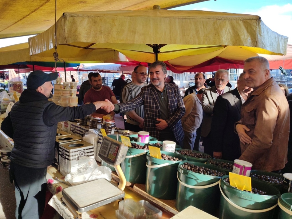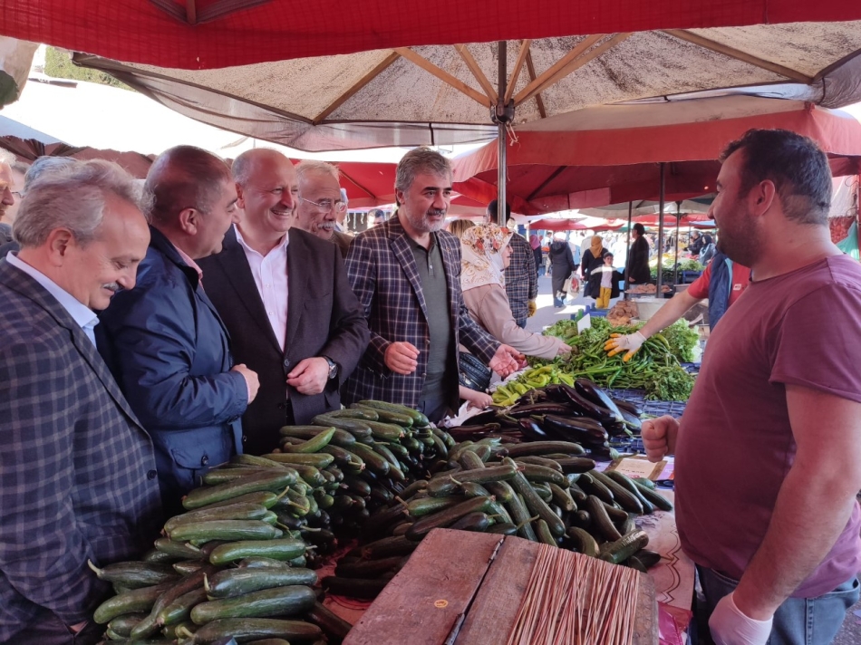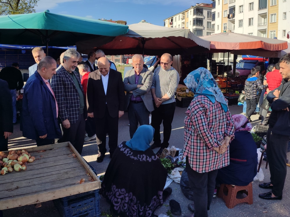 Alparslan ve beraberindekiler ile Pazar esnafının sorunlarını dinleyen Hamarat alış veriş yapmak için pazara gelen vatandaşlarla da sohbet etti.