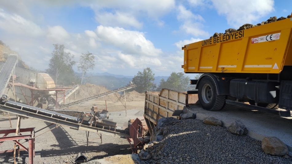 Ünye Belediye Başkanı Hüseyin Tavlı’nın girişimleriyle Tekkiraz Mahallesi’nde kurulan ikinci konkasör şantiyesinde malzeme üretimine başlandı. Ünye Belediye Başkanı Hüseyin Tavlı, “Ünye'mizi yol yatırımlarımız anlamında örnek kent yapıyoruz” dedi.