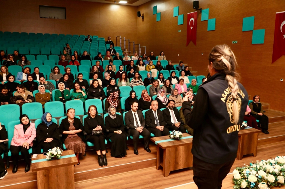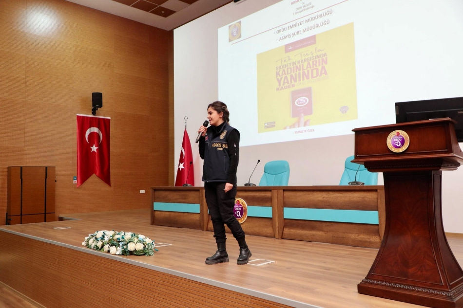 Polis memuru Semra Bekar, KADES uygulamasının sağladığı faydaları anlattığı sunumda Ordu il genelinde 2024 yılında KADES başvurusu olarak 3072 ihbar aldıklarını söyledi.