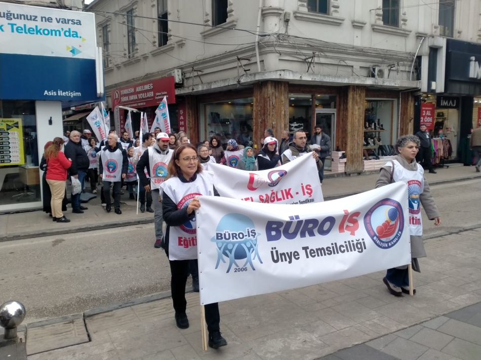 13 Ocak Pazartesi günü Ünye Döner Çeşme Meydanı’nda buluşan Eğitim-İş, Eğitim-Sen, Hürriyetçi Eğitim-Sen, Büro-İş, Genel Sağlık-İş, Tarım-İş, Anadolu Eğitim-Sen, Eğitim ve Bilim Gücü Sendikası Ünye İlçe Temsilciliklerine bazı siyasi parti ve derneklerden de destek geldi.