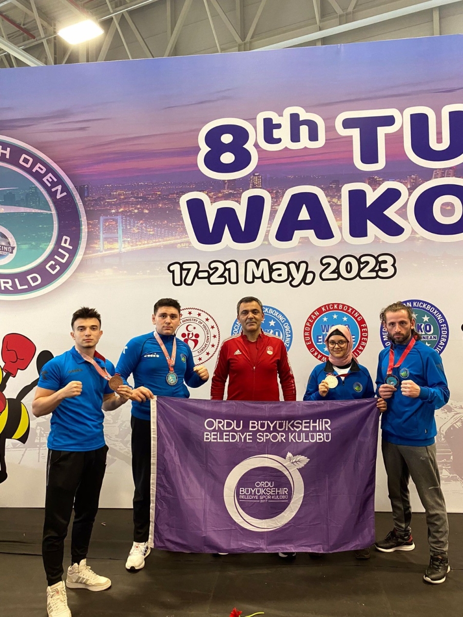 Türkiye Kick Boks Federasyonunca İstanbul TÜYAP Fuar ve Kongre Merkezi’nde 17-21 Mayıs tarihleri arasında düzenlenen 8. Turkish Open WAKO Dünya Kupası’na Ordu Büyükşehir Belediye Spor Kulübü’nden de sporcular katıldı. Farklı kategorilerde kıyasıya mücadele eden sporculardan Yaşar Efe Akçay, Light Contact Büyük Erkekler 63 kg’da 3’üncü, Ergani Çayan Müzikli Form Büyük Erkeklerde 3’üncü, Şeyma Ayhan Genç Bayanlar Müzikli Formda 2’inci ve Genç Bayanlar Creatif Formda 3’üncü olurken Hamza Berk Kılıçoğlu Yıldız Erkekler Point Fight kategorisinde 2’incilik elde etti.