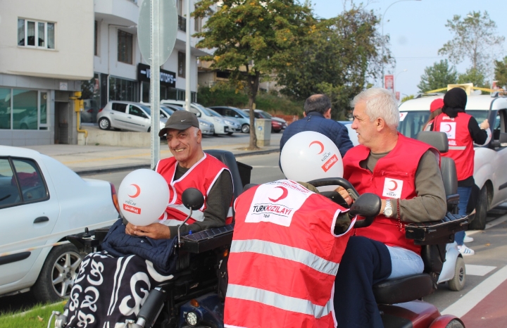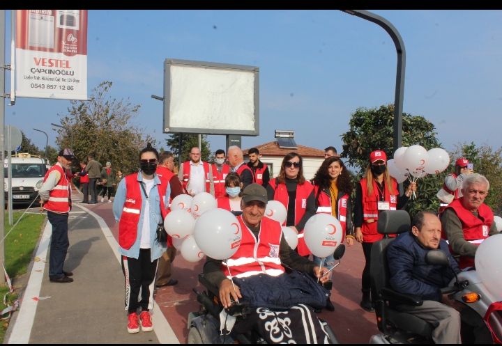 Türkiye Sakatlar Derneği Ünye Şube Başkanlığı’nın birçok üyesinin de katılım sağladığı yürüyüşte Kızılay gönüllüleri sahilde yürüyen çocuklara balon dağıttı.