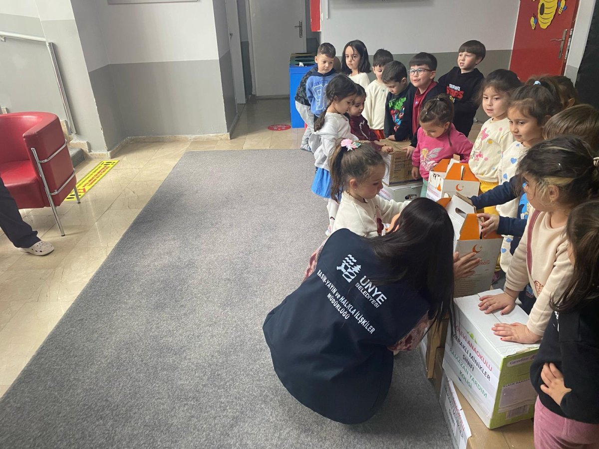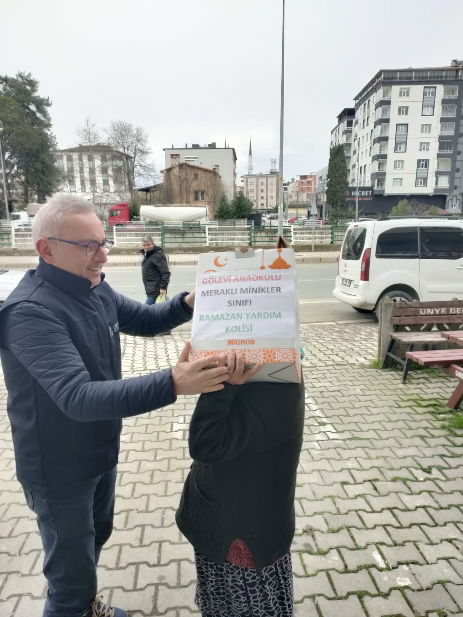 İhtiyaç sahibi vatandaşlara gıda yardımı kolisi hazırlayan minik yürekler örnek davranış sergiledi. Ünye Gölevi Anaokulu Meraklı Minikler Sınıfı öğrencileri anlamlı bir sosyal sorumluluk projesine imza attı. Sınıf Öğretmeni Aslıhan Dindar ve öğrenci velilerinin işbirliği ile öğrenciler gıda kolisi hazırladı. Hazırlanan koliler Ünye Belediyesi Basın, Yayın ve Halkla İlişkiler Müdürlüğü ekipleri tarafından teslim alındı. Öğrencilere bu örnek davranışından dolayı teşekkür eden ekipler her biri özenle hazırlanan yardım kolilerini daha önceden belirlenen ihtiyaç sahibi vatandaşlara teslim edildi.
