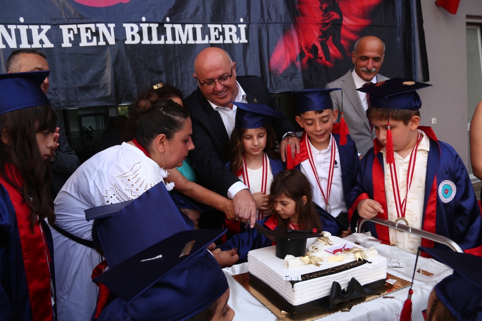Anasınıfı öğrencilerinin ve ardından 4. Sınıf öğrencileri mezuniyet belgelerini almak için sahne çıkmasının ardından Özel Ünye Nazmi Arıkan Fen Bilimleri Canik Okulları Kurucu Genel Müdürü Hüseyin Duman’ın da katılımıyla mezuniyet pastası kesilerek öğrenciler kep atma mutluluğunu yaşadı.
