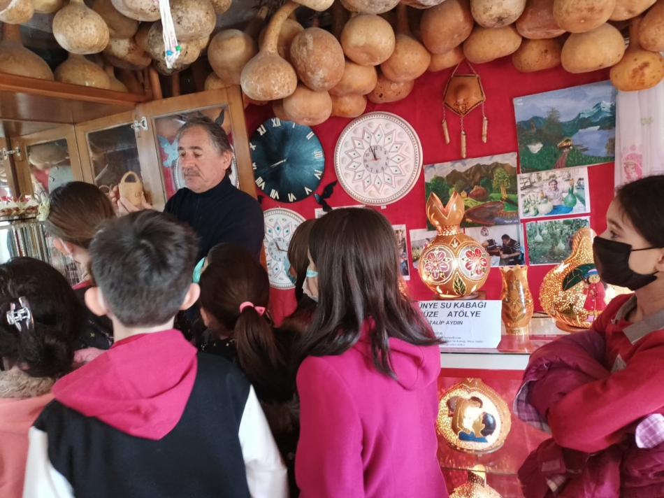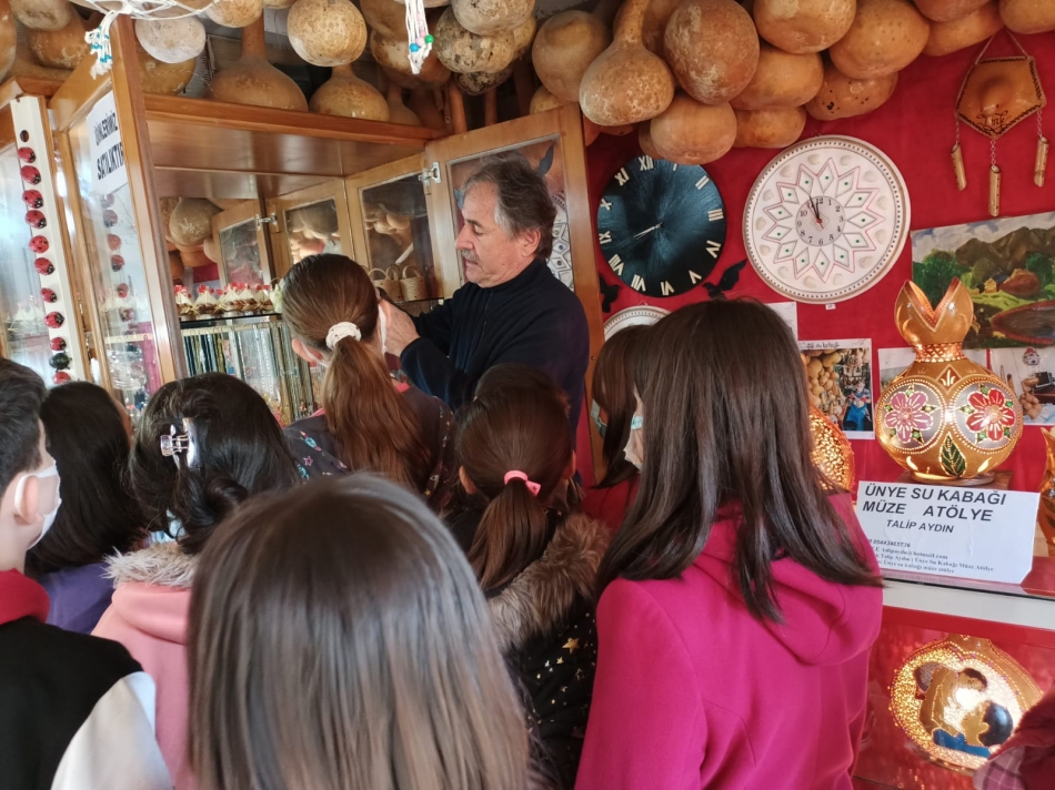 8 Nisan Cuma günü Ünye Merkez İlk Okulu öğretmeni Nimet Çağlar öncülüğünde öğrenciler Ünye Su kabağı Müze Atölyesini ziyaret etti.