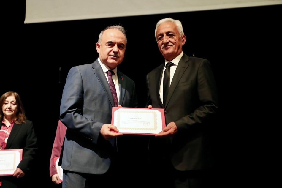 Konuşmaların ardından aday öğretmenlerin yemin töreni gerçekleştirildi ve emekliye ayrılan öğretmenlere “Hizmet Şeref Belgeleri” Vali Muammer Erol tarafından verildi.