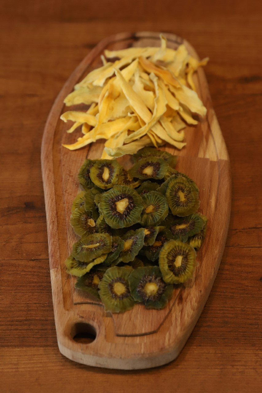 Ordu’da yetişen meyveleri kurutarak cips haline getiren 3 kız kardeş Neşe Aysan, Esra Aysan ve Zarife Aysan Şatıroğlu Büyükşehir Belediyesinin destekleri ile üretimine başladıkları‘’Bi’ Başka Kuru Meyve ve Sebze Cipsi’’ markası ile seri üretime geçmeyi hedefliyor.