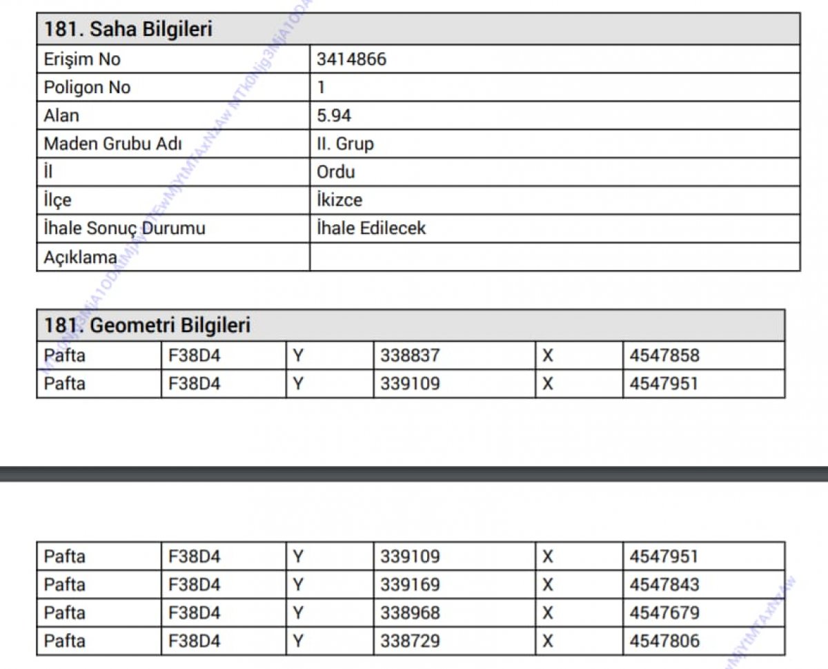 Ordu Çevre Derneği yönetim kurulu olarak basına gönderilen açıklamada Ordu ilinin de içinde olduğu 45 ilde 181 alanda maden için arama ihalelerinin ve işletme sürecinin başlatıldığının ilan edildiği vurgulanarak, “Ordu, bütün ilçeleriyle maden, HES, taş ocaklarıyla yaşanmaz hale getirilmeye devam ediliyor. Dernek olarak Bakanlık ve yerel birimlerin sitelerini sürekli inceliyoruz. Yeni bir tehlikeli durum daha yayımlandı. Bir ilçemizde daha maden sahası ihale edilecekler kapsamına alındı. İkizce ilçemizde İkizce Ünye arasında 211. Grupta İhale Edilecek Alanların Listesi içinde 151. sırada yer verilen maden sahası 5,94 hektar olup 17.12.2021 tarihinde ihale edilecek. Duyuruda ayrıca şu bilgi yer almaktadır. “Talep edilen ER:3387021 sayılı saha taksir ve düzenleme işlemi yapılması sonucunda ER:3414866 sayılı saha olarak ihale programına alındı. Sahanın üzerinde Kapalı Orman ve Devlet Avlağı bulunmaktadır.” bilgisi verildi.