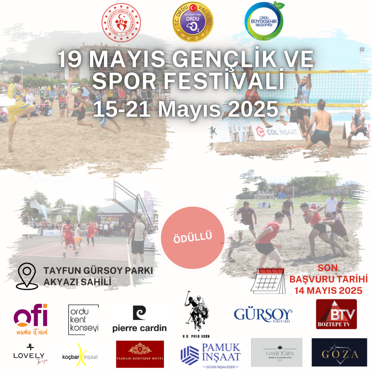 Ordu Gençlik ve Spor İl Müdürlüğü, 19 Mayıs Atatürk’ü Anma, Gençlik ve Spor Bayramı kapsamında bu yıl da gençleri sporla buluşturuyor. 15-21 Mayıs tarihleri arasında düzenlenecek Gençlik ve Spor Festivali, ödüllü turnuvalar, spor etkinlikleri ve kültürel programlarla gençlere unutulmaz bir hafta yaşatacak.