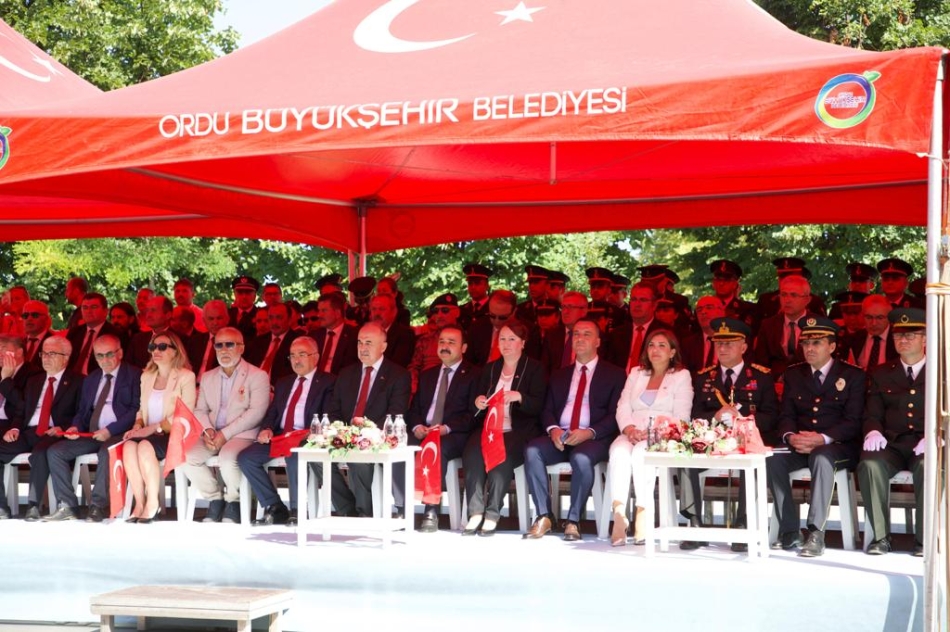Burada düzenlenen törene, Vali Muammer Erol, MHP Ordu Milletvekili Naci Şanlıtürk, Ordu Büyükşehir Belediye Başkanı Dr. Mehmet Hilmi Güler, Ordu Cumhuriyet Başsavcı Vekili Nilüfer Balcı, İdare Mahkemesi Başkanı Tayfur Sami Atılgan, Ordu Üniversitesi Rektör Vekili Prof. Dr. Derya Bostancı, Baro Başkanı Av. Sibel Torun, Vali Yardımcıları Hacı Mehmet Kara, Turgay Ergin, Altınordu Kaymakamı Erkan Karahan, İl Jandarma Komutanı Kıdemli Albay Numan Öksüz, İl Emniyet Müdürü Atilla Aksoy, Altınordu Belediye Başkanı Aşkın Tören, daire müdürleri, siyasi parti, meslek kuruluşları ve sivil toplum örgütlerinin temsilcileri, askeri erkan ile vatandaşlar katıldı.
